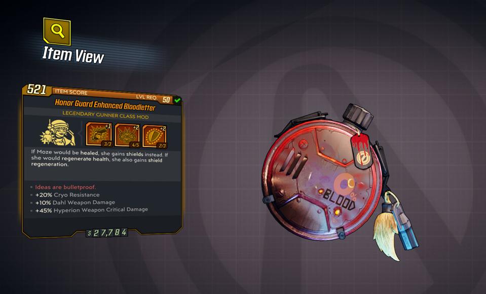 Weapons with exiting IB next 2 mags fire. The Legendary Moze Class Mod Green Monster comes from the Borderlands 3 Handsome Jackpot - DLC. Great mobbing build and bossing doesnt use Vampyr so no grenade spamming.